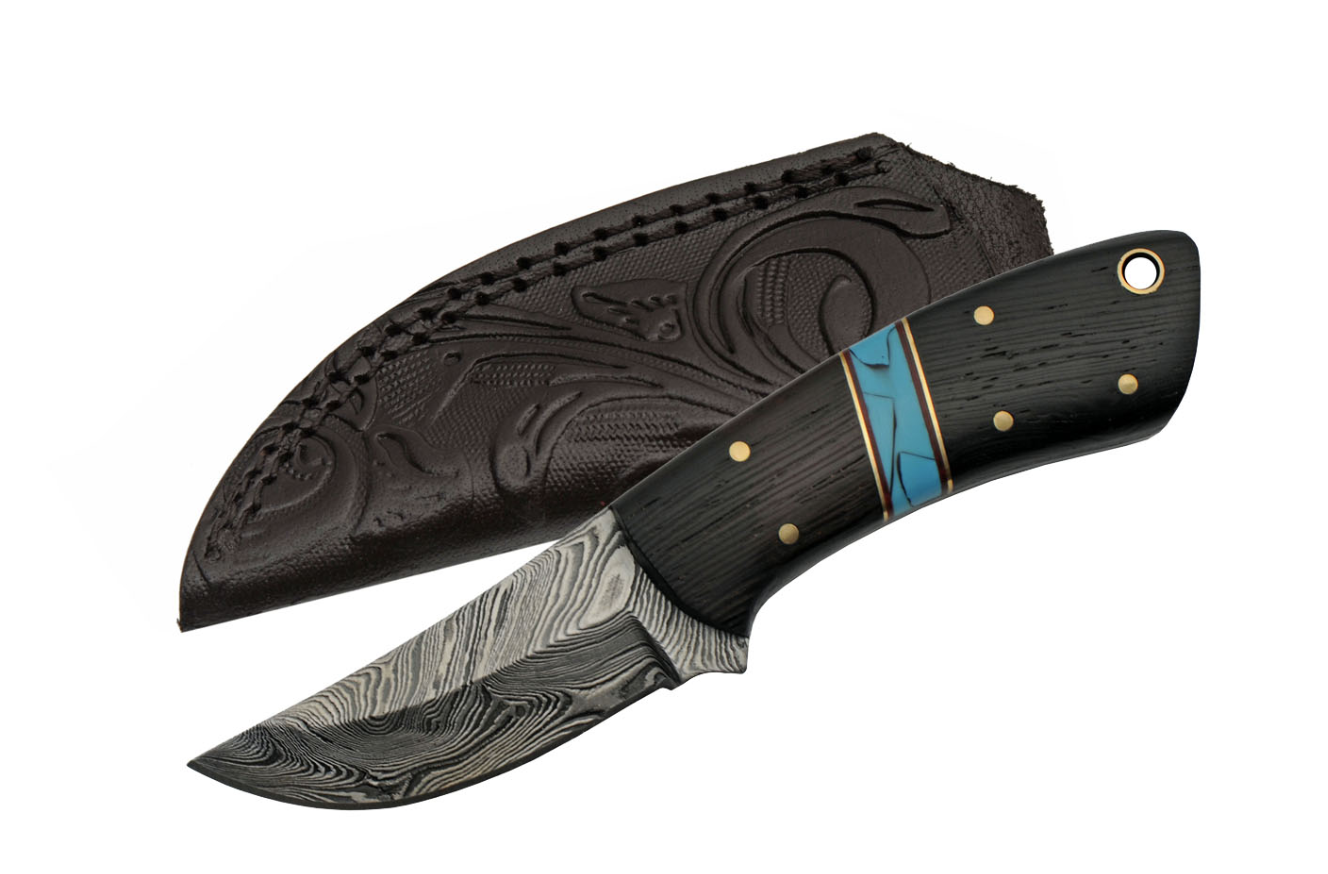 Add to Cart 9" BRASS PAKKAWOOD HUNTER MSRP: Was: Now: $55.00 9" OVERALL LENGTH 4.5" DAMASCUS BLADE 4.5" RED/BLACK WOOD & BONE HANDLE BRASS SPACERS LEATHER SH…