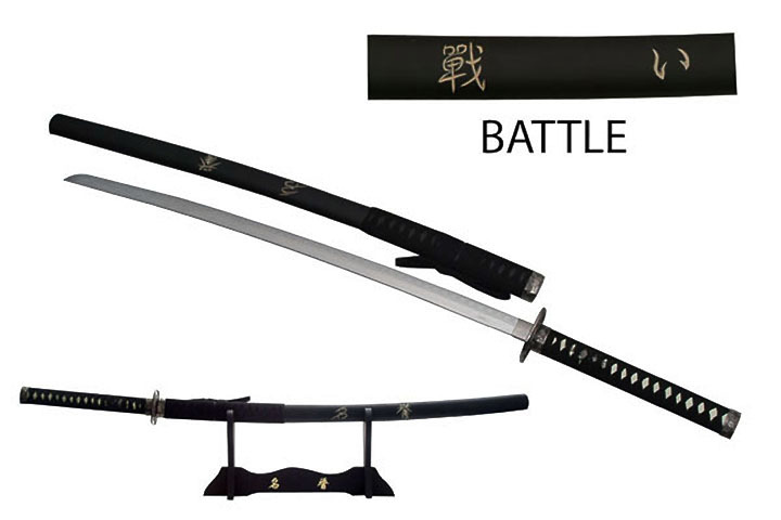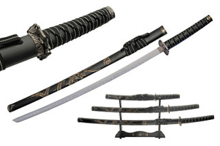 Sale Add to Cart 41" SNARLING WOLF SAMURAI MSRP: Was: $99.99 Now: $77.99 41" OVERALL LENGTH 30" 1045 CARBON STEEL BLADE 11" BLACK CORD WRAPPED HANDLE PVC SHEATH WITH 3D P…