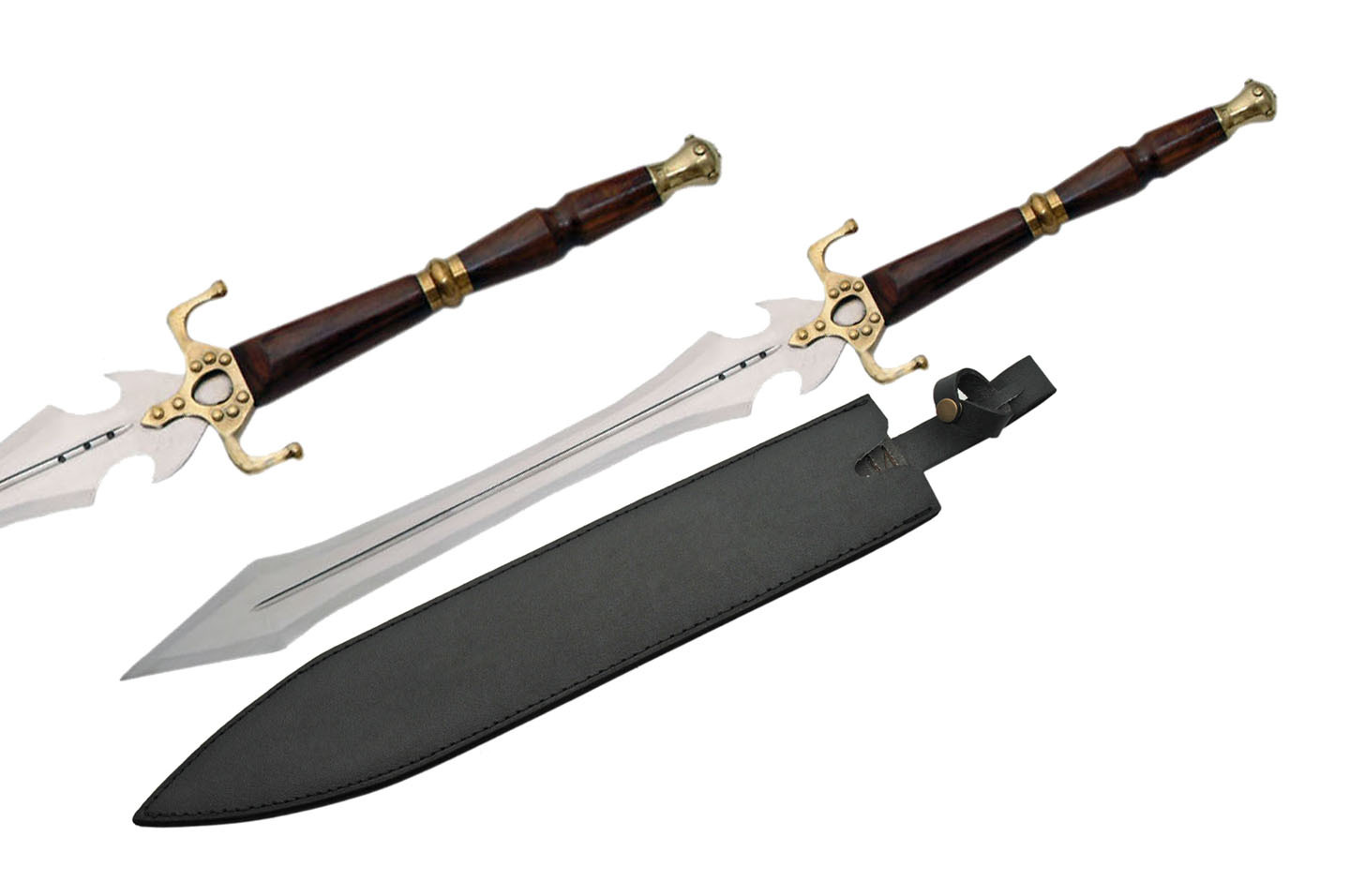 Add to Cart 44" WESTERN MEDIEVAL SWORD MSRP: Was: Now: $249.99 44" OVERALL LENGTH 33" 1060 CARBON STEEL BLADE LEATHER WRAPPED HANDLE STAINLESS STEEL GUARD &…